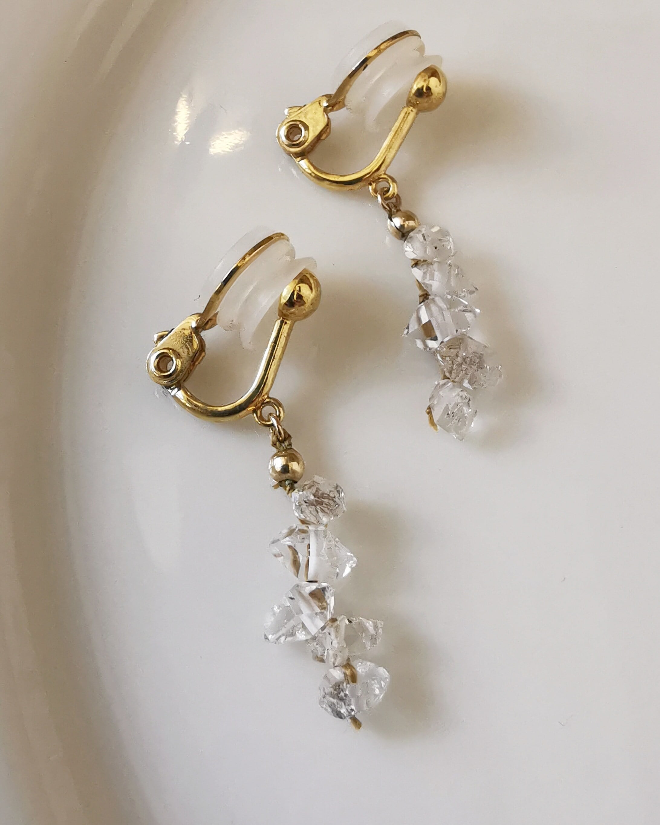 ハーキマーダイヤモンドを石鹸のアワアワにみたてて手仕事でつくられたピアス・イヤリング
